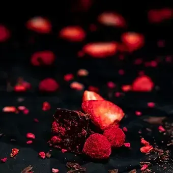 This is a Raspberry & Strawberry chocolate dream for the berry lover. Outstanding match with the dark exclusive chocolate.